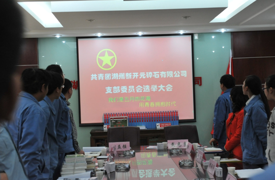 2014年4月4日,共青團湖州新開元碎石有限公司支部委員會選舉大會于13:30在公司大會議室召開。上海材料公司團支部書記劉益強、副書記周旻,公司總經(jīng)理姚紹武、工會主席戴光良、委員蔡群榮、李永亮以及公司全體團員和部分青年代表參加了本次會議。此次選舉大會由工會主席戴光良、總監(jiān)票人陳大民共同主持完成。