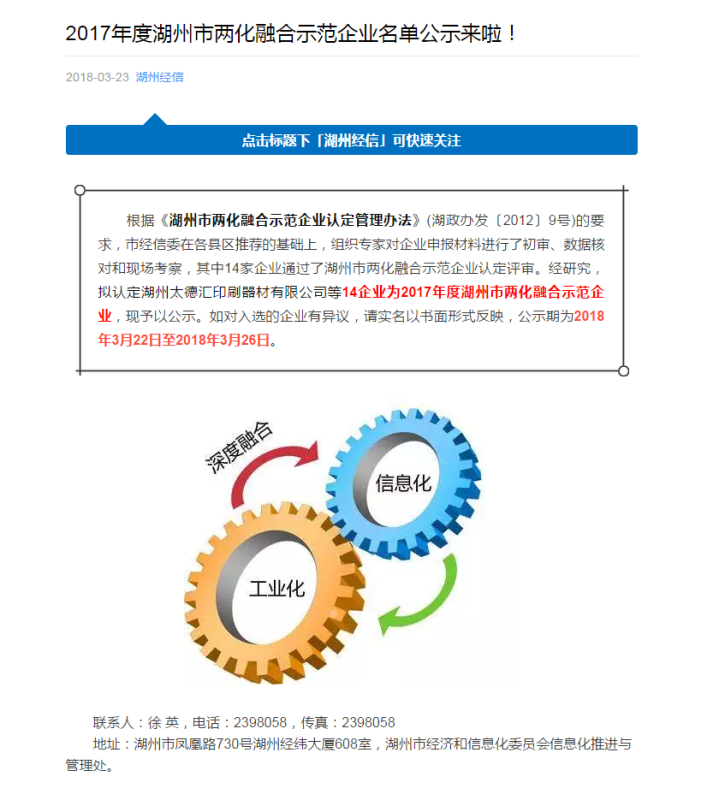 新開元被評(píng)為2017年度湖州市兩化融合示范企業(yè)。
