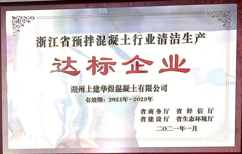 湖州上建華煜獲“浙江省預(yù)拌混凝土行業(yè) 清潔生產(chǎn)達(dá)標(biāo)企業(yè)”榮譽(yù)稱號